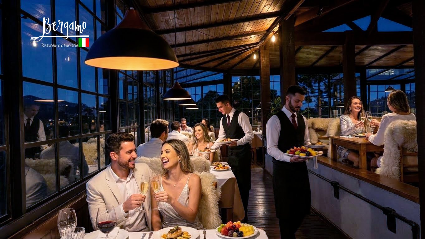 No Bergamo Restaurante em Monte Verde, a ceia de Natal ganha o toque da verdadeira arte de receber bem. Na área Frente Bar, com vista iluminada da cidade, a mesa para duas pessoas oferece um espaço acolhedor e elegante, ideal para celebrar a data com alguém especial, seja um amigo, familiar ou companhia querida.